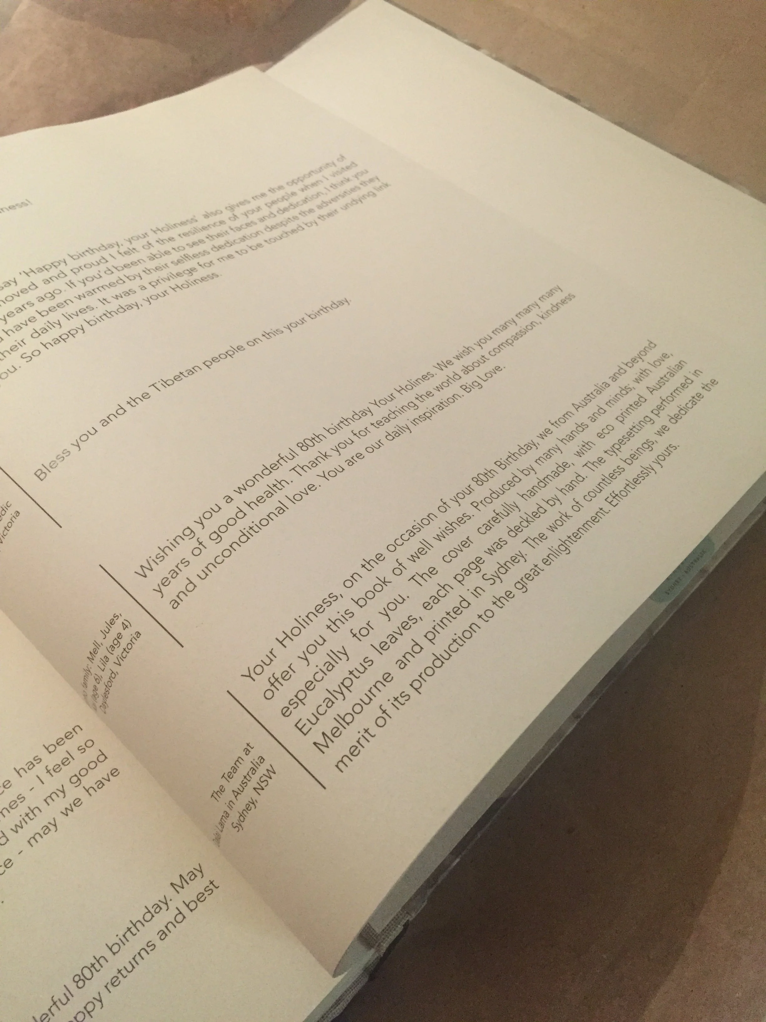 Book of Birthday Wishes for His Holiness the Dalai Lama from the Australian Public, 2015