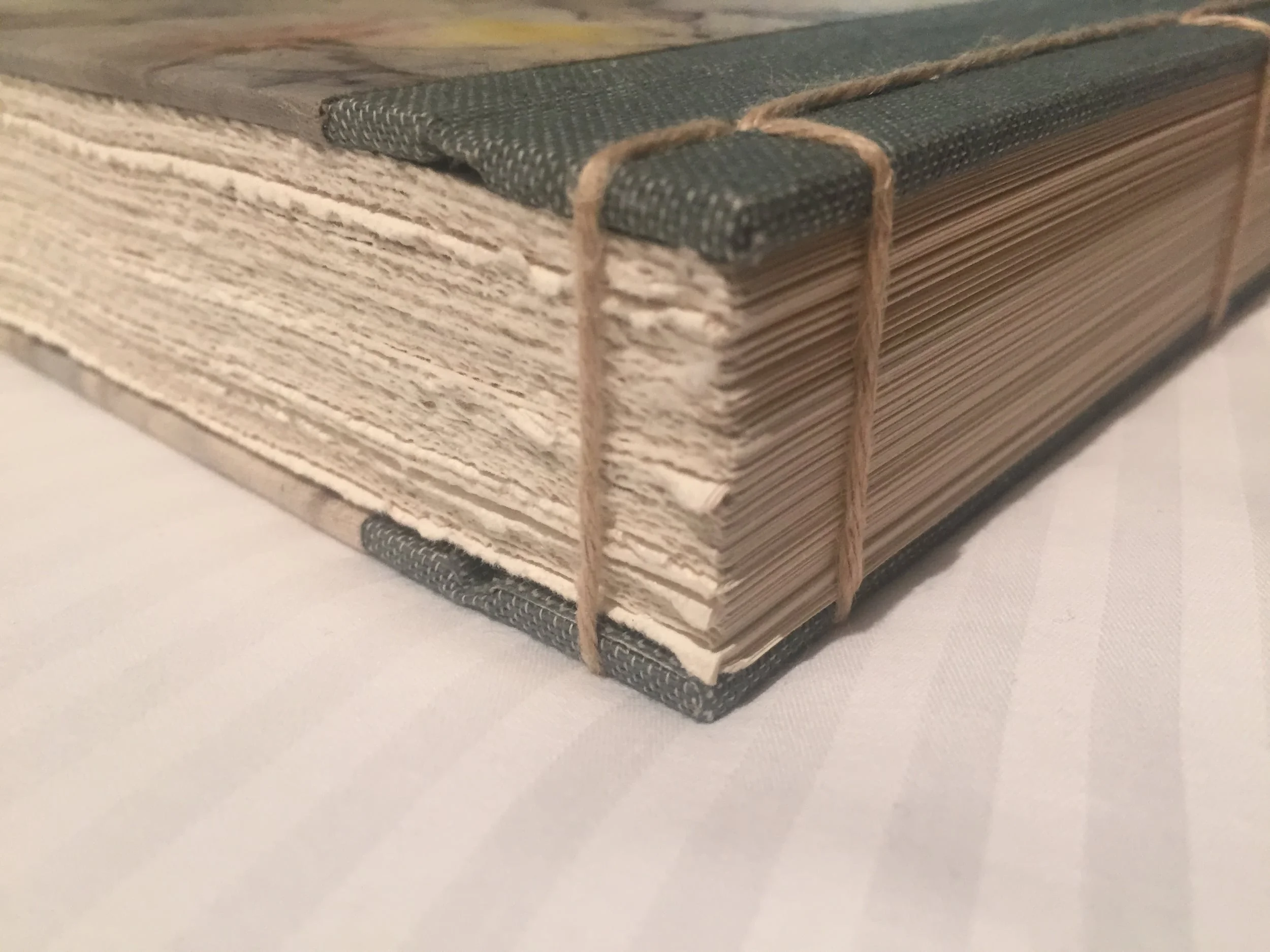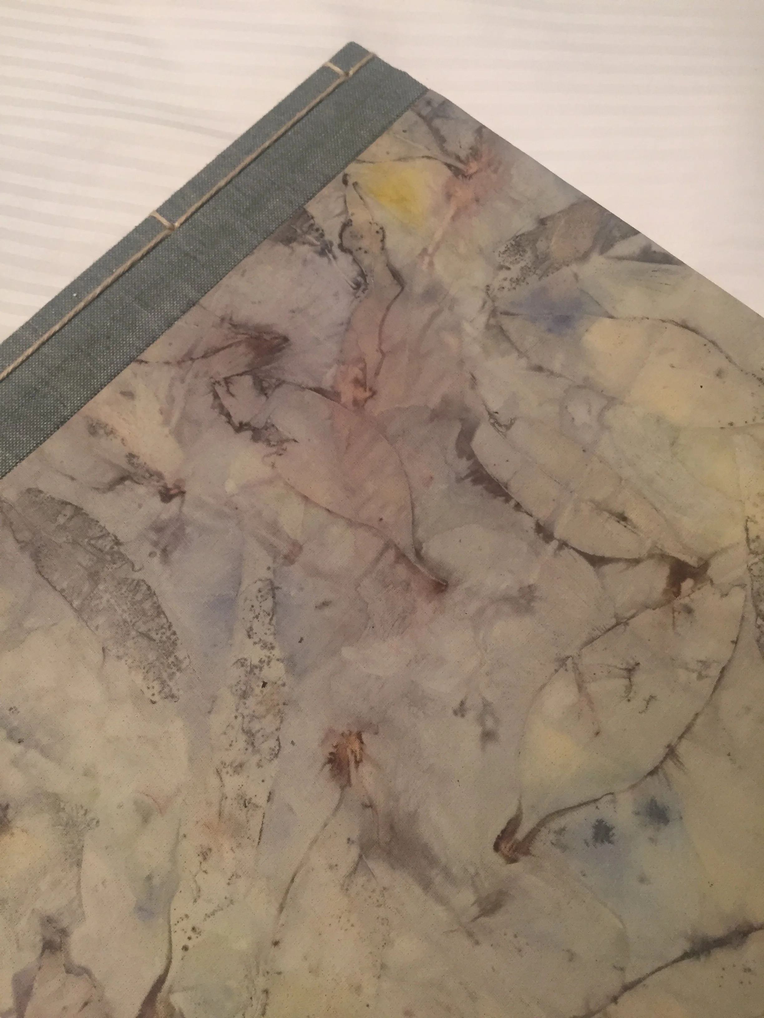 The book was carefully handmade by Cali Anderson, with eco printed Australian eucalyptus leaves, each page was deckled by hand.