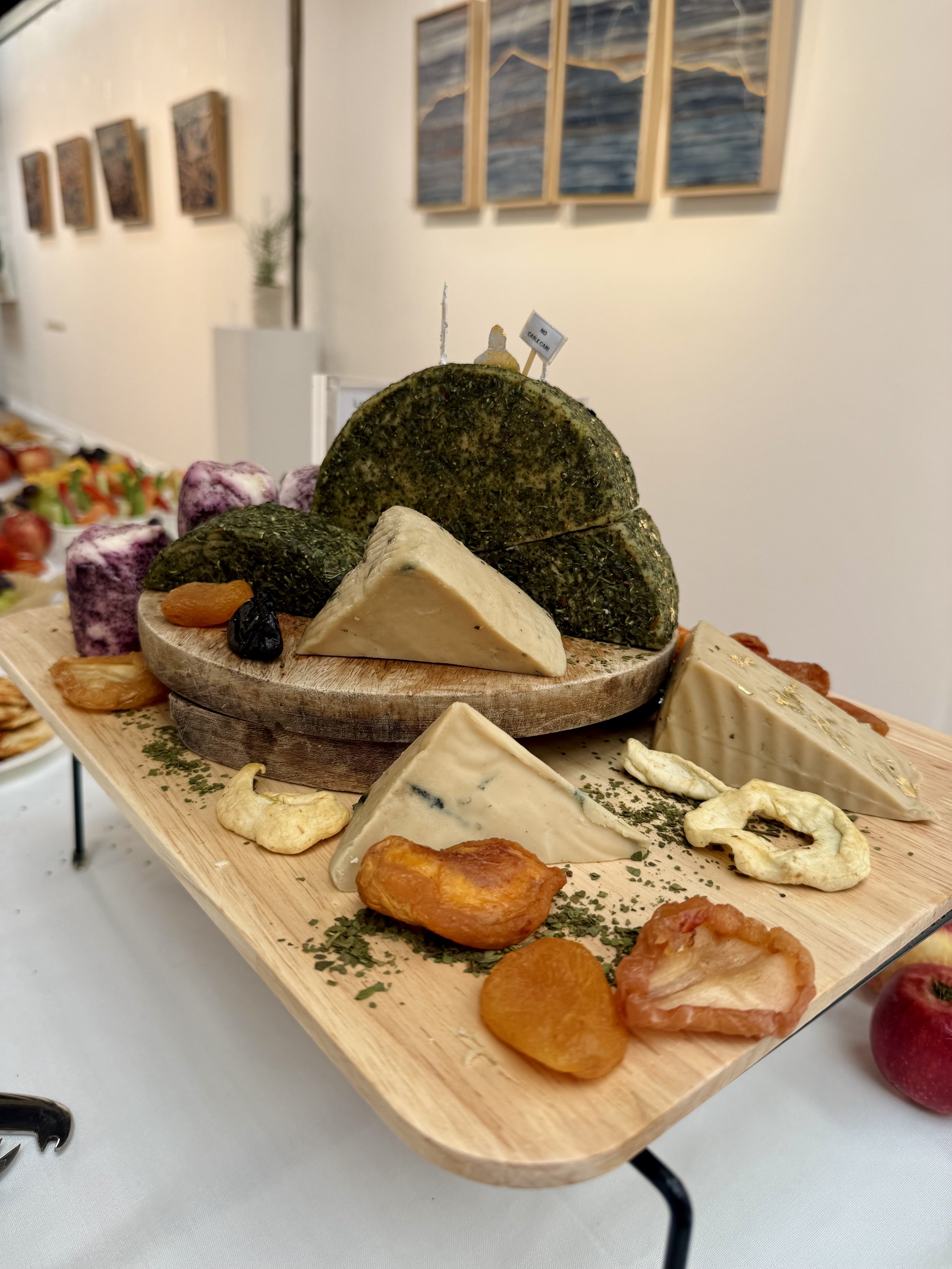 The soundscape composed from recordings taken during her period of quarantine in Act I, is made in collaboration with musician and sound engineer Louis Ingliss from Boorloo Perth, Western Australia. The edible art which can be sampled at the finnesage closing event is the second in a series of collaborations forged through the ethically aligned friendship formed between Lada and Dr Julie Martyn, microbiologist and co-founder of Artisa Plant Based Cheeses based in lands surrounding the kanamaluka Launceston.