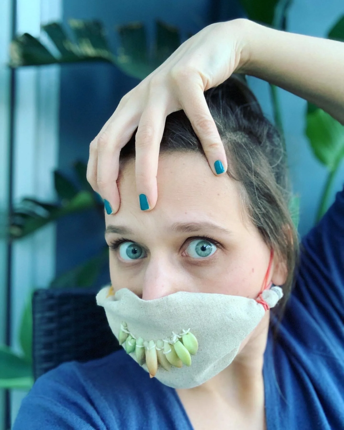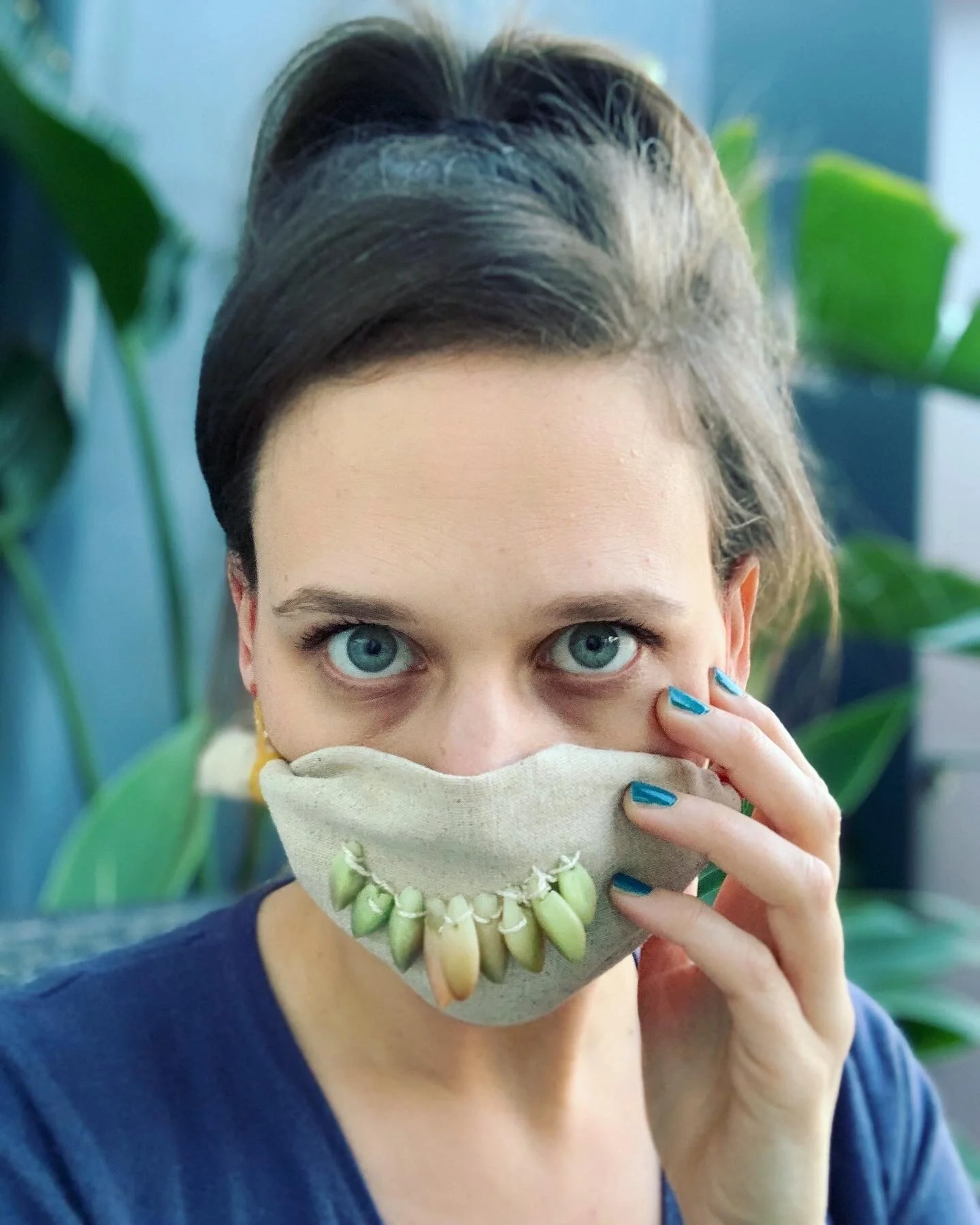 Also useful for the ladies in the post-apocalypse. When some random dude on the street asks you to smile, put this on. Just creepy enough to make them feel as uncomfortable as they made you feel.